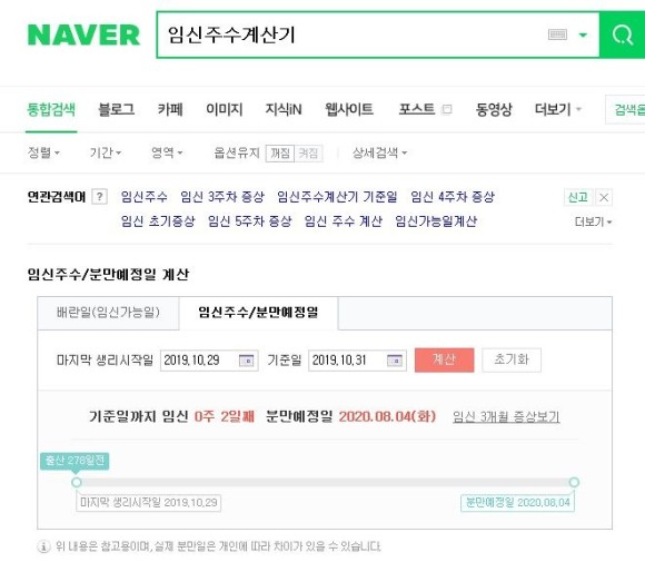 알아 보니 네이버 에 임신주수계산기 라고 편하게 할수있는 방법 이 있었어요