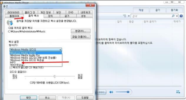 설정이 완료 되면 다시 윈도우 미디어 플레이어 앨범 으로 돌아오셔서 변환해주실 음원 파일 선택을 해주세요
