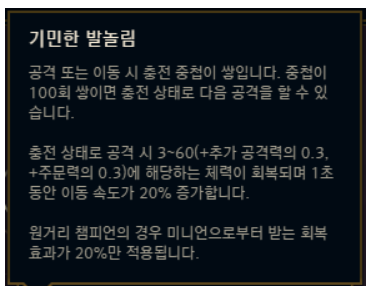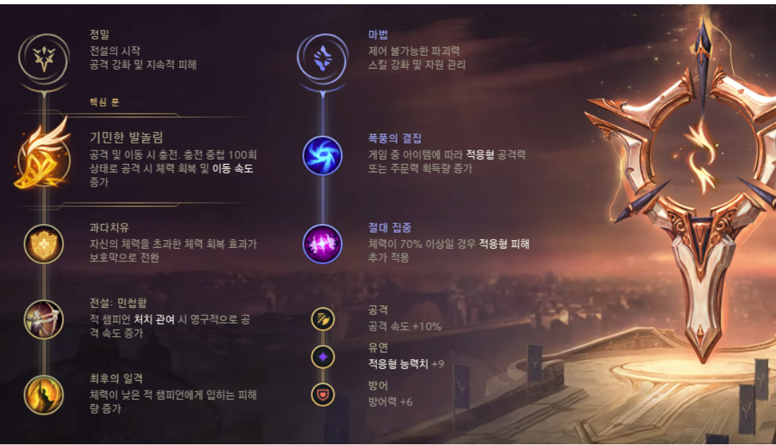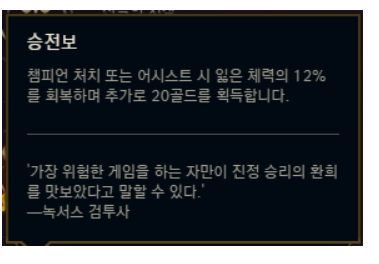 기민한 발놀림 이하로는 승전보를 사용해서 생존력과 성장력을 올려주시면 됩니다. 한타에서 은근 승전보 때문에 사는 경우가 종종 있는 편입니다.