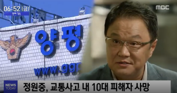 이날 경기 양평 경찰서에 따르면 지난 22일 오후 7시 32분께 양평군 양평읍의 한 대형마트 앞 교차로에서 정원중이 몰던 BMW 차량과 마주 오던 오토 바이와 충돌다고 해용..
