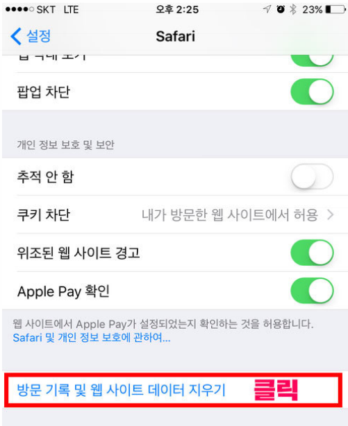 그리고 다음과같이 방문기록 및 웹사이트 데이터 지우기 항목이 있습니다 해당 항목을 눌러줍니다