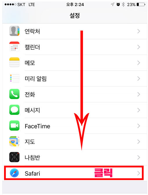 먼저 아이폰 메인 화면에서 설정 앱 버튼을 눌러서 들어가줍니다 그러면 위와 같은 화면이 나오는데요 여기에서 사파리 항목을 눌러주세요