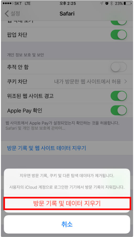 그러면 이렇게 방문기록 및 데이터 지우기 항목이 뜨게되는데요 방문기록 삭제를 해주면 여태껏 저장되있던 캐시 데이터들이 삭제되기 때문에 읽어들이는 작업을 하지 않기 때문에 더욱 빠르게 접속하실 수 있습니다 물론 쓰레기통에서 쓰레기를 비워주는 것이랑 비슷하다고 생각하시면 됩니다