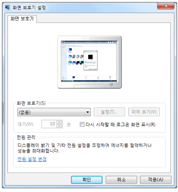 물론 따로 화면보호기를 사용하지 않으시려면 없음 항목을 선택 해주시면 됩니다