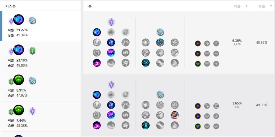 팀 조합만 잘 맞추고 픽만 해줘도 꽤 괜찮은 서폿인데, 이렇게 낮은 승률이라니.. 조금 아쉬운 모습입니다. 플레이 횟수는 163,912회로 꽤 인기 있는 모습을 보여주고 있습니다. 라인전도 강한 편이고, 유틸성도 좋으며 슈퍼 세이브도 자주 나오는 편이기 때문에 인기는 꽤 있는 서폿인 것 같네요!