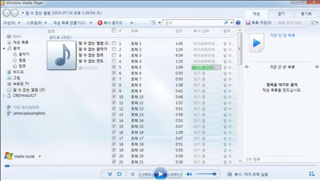 설정이 완료 되면 다시 윈도우 미디어 플레이어 앨범 으로 돌아오셔서 변환해주실 음원 파일 선택을 해주세요